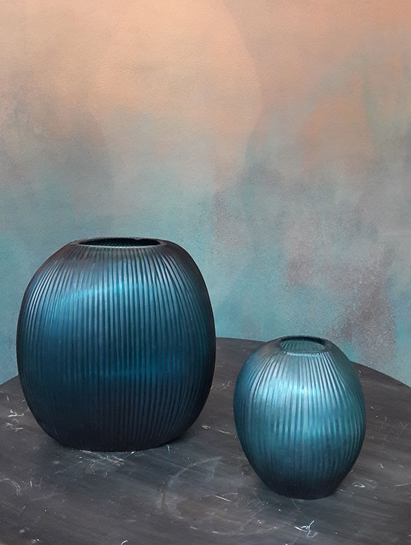 Die Vasen aus der Serie Gournia in der Farbe light clear petrol wurden, wie alle Vasen von Guaxs, nach eigenen Entwürfen in einer kleinen exklusiven Glasmanufaktur von Hand hergestellt. Die Glashandwerker arbeiten üblicherweise in Teams. Damit ein solches Team erfolgreich arbeitet, wird ein hoher Grad an Geschick, Koordination, Kraft und Erfahrung benötigt.